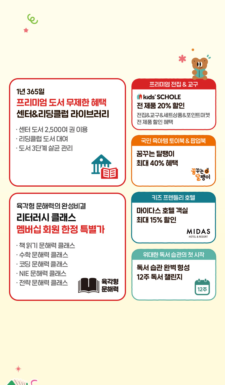 ㈜키즈스콜레는 원활한 상담 및 안내를 위해 귀하의 개인정보를 수집∙이용 및 제공합니다.